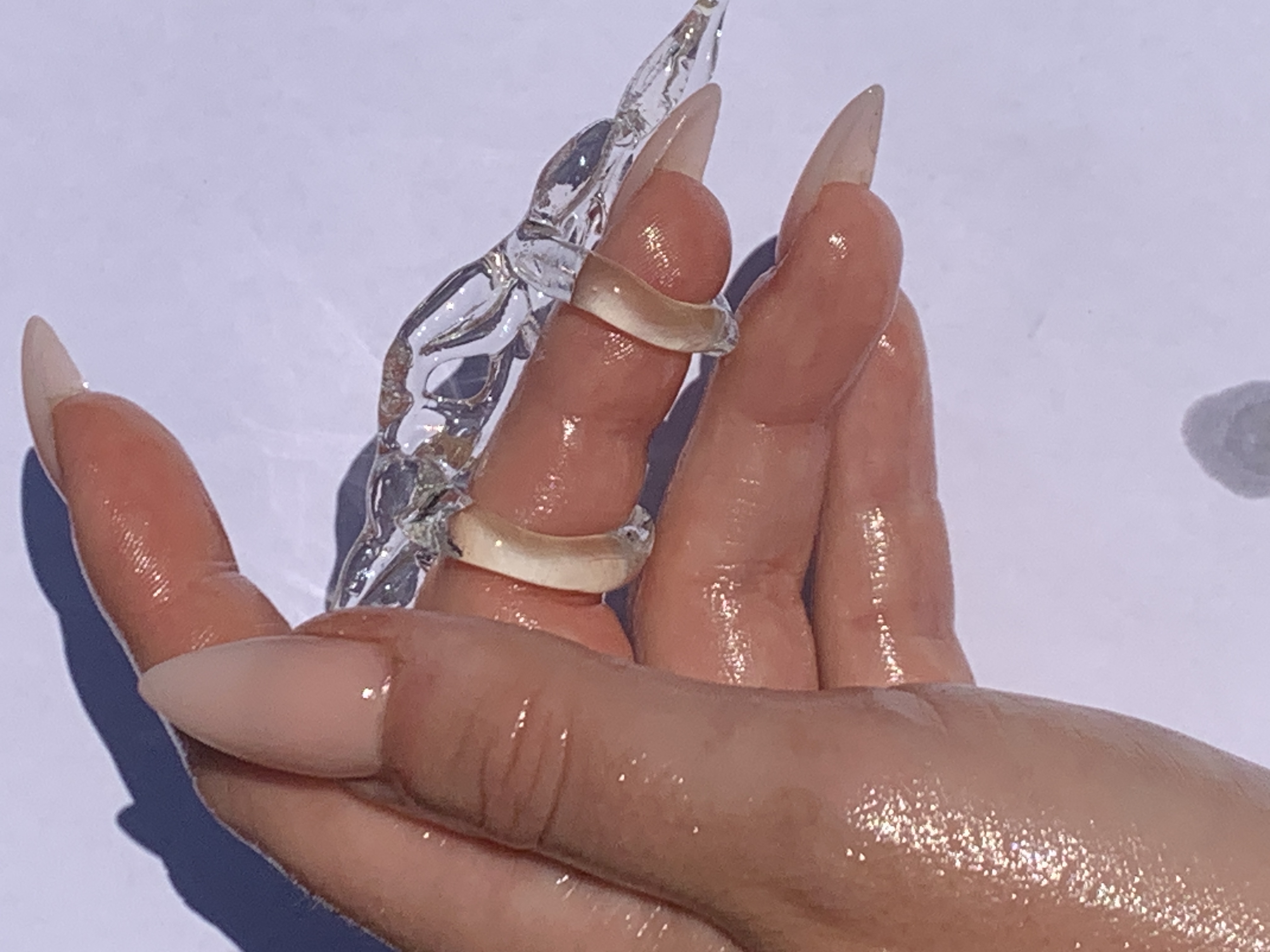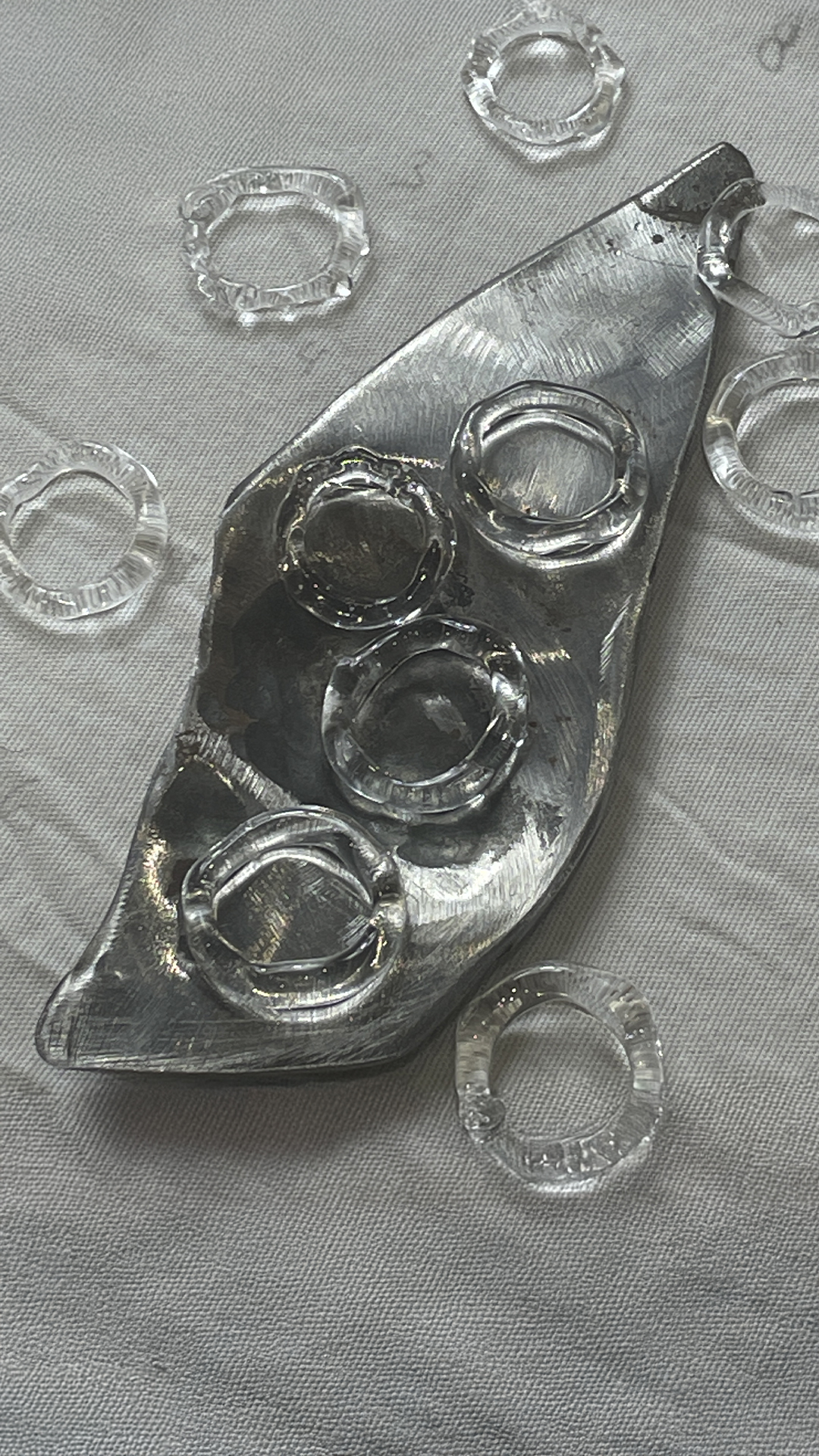 Rain and Rivers is an ethereal collection of wearable sculptures representing the fluidity of water and the rawness of stone. Each piece is sculpted by hand and made to measure from high-quality borosilicate glass.